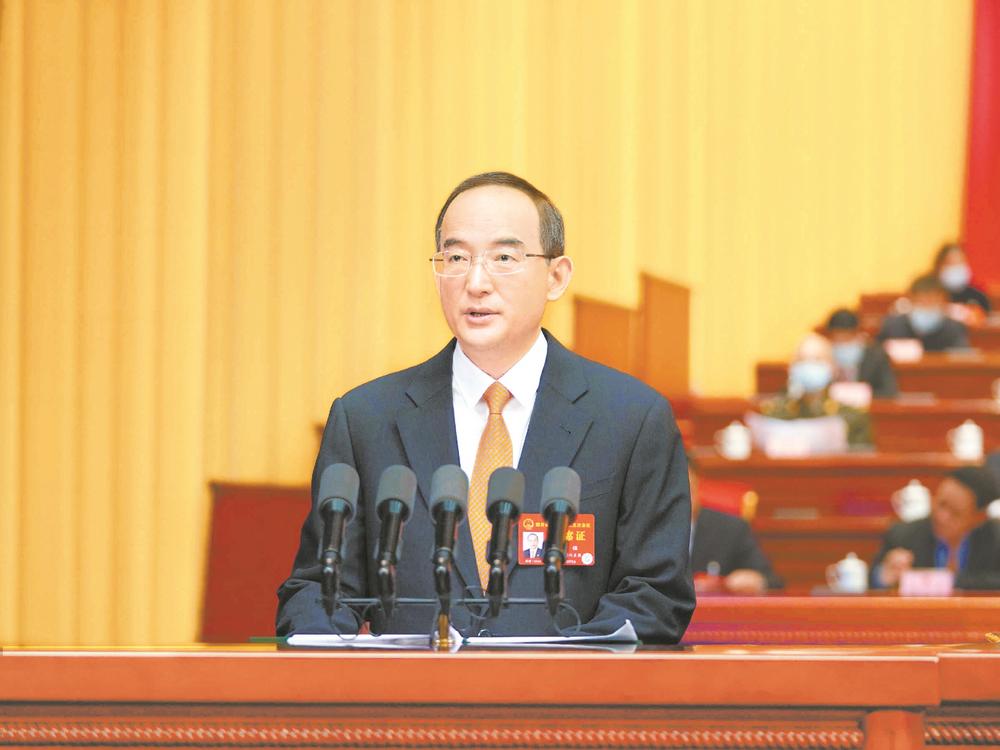 ཧོང་ཆང་གིས་འདས་མ་ཐག་པའི2021ལོ་ནི་ཀྲུང་གོ་གུང་ཁྲན་ཏང་བཙུགས་ནས་ལོ100འཁོར་བའི་ལོ་ཡིན་ཞིང་། ཏང་ཀྲུང་དབྱང་གིས་རྟེན་འབྲེལ་བྱེད་སྒོ་གཟབ་རྒྱས་ངང་སྤེལ་བ་དང་ཏང་གི་སྐབས་བཅུ་དགུ་པའི་ཀྲུང་ཨུ་ཚང་འཛོམས་གྲོས་ཚོགས་ཐེངས་དྲུག་པ་འཚོགས་ནས་ང་ཚོར་ཡིད་ཆེས་དང་དཔའ་མཛངས་རྟུལ་ཕོད་ཀྱིས་མདུན་སྐྱོད་བྱེད་པའི་དུས་རབས་གསར་པར་ལྕག་སྐུལ་གནང་ཡོད། ལོ་འདིར་རྙོག་འཛིང་ཆེ་ཞིང་ཛ་དྲག་ཆེ་བའི་ཕྱི་རོལ་ཁོར་ཡུག་དང་རིམས་ནད་ཀྱི་གནོད་སྐྱོན་ཕོག་པའི་ཤུགས་རྐྱེན་ལ་དམིགས་ནས། ང་ཚོས་ཞི་ཅིན་ཕིང་གི་དུས་རབས་གསར་པའི་ཀྲུང་གོའི་ཁྱད་ཆོས་ལྡན་པའི་སྤྱི་ཚོགས་རིང་ལུགས་ཀྱི་དགོངས་པས་མཛུབ་སྟོན་བྱས་ཤིང་། སྤྱི་ཁྱབ་ཧྲུའུ་ཅི་ཞི་ཅིན་ཕིང་གིས་སི་ཁྲོན་ལས་དོན་ལ་གནང་བའི་མཛུབ་སྟོན་གལ་ཆེན་རབ་དང་རིམ་པའི་དགོངས་དོན་དང་ཏང་ཀྲུང་དབྱང་དང་རྒྱལ་སྲིད་སྤྱི་ཁྱབ་ཁང་གི་ཐབས་ཇུས་བཀོད་སྒྲིག་ཁྱོན་ཡོངས་ནས་དོན་འཁྱོལ་བྱས་པ་དང་། ཞིང་ཆེན་ཏང་ཨུའི་འགོ་ཁྲིད་འོག་རིམས་ནད་འགོག་ཟོན་དང་དཔལ་འབྱོར་དང་སྤྱི་ཚོགས་འཕེལ་རྒྱས་གཏོང་རྒྱུ་གཅིག་གྱུར་གྱིས་འཆར་འགོད་བྱས་ཤིང་། “བརྟན་པོ་དྲུག”དང“འགན་ལེན་དྲུག”གི་ལས་དོན་ཏན་ཏིག་ངང་བསྒྲུབས་པ་དང་།“ཞིང་ལས་བརྟན་པོ་དང་། བཟོ་ལས་སྟོབས་ལྡན། འཛད་སྤྱོད་ལ་སྐུལ་འདེད། ནང་མཁོ་རྒྱ་སྐྱེད། རྣམ་གྲངས་དམ་འཛིན། གསར་གཏོད་ལ་མཐོང་ཆེན། འཁོར་སྐྱོད་ཉེན་མེད། སྤུས་ཚད་མཐོར་གཏོང”སོགས་ཀྱི་ལས་ཀའི་བསམ་ཕྱོགས་ལྟར་དཀའ་སྤྱད་སྙིང་རུས་དང་། འབད་བརྩོན་དངོས་སྒྲུབ། དཔལ་འབྱོར་འཕེལ་རྒྱས་བརྟན་པོ་དང་སྤུས་ཚད་མཐོར་གཏོང་། སྤྱི་ཚོགས་ཀྱི་ཁྱོན་ཡོངས་བརྟན་པོ་བཅས་རྒྱུན་འཁྱོངས་བྱས་ནས་ཞིང་ཆེན་སྐབས་བཅུ་གསུམ་པའི་མི་དམངས་འཐུས་ཚོགས་ཀྱི་གྲོས་ཚོགས་ཐེངས་བཞི་པའི་ཐོག་གཏན་འཁེལ་བྱས་པའི་དམིགས་ཚད་ལས་འགན་ལེགས་པར་བསྒྲུབས་ནས“ལོ་ལྔའི་འཆར་འགོད་བཅུ་བཞི་པ”ཡི་འགོ་ཡག་པོ་འཛུགས་རྒྱུ་མངོན་འགྱུར་བྱས་ཡོད། ཞིང་ཆེན་ཡོངས་ཀྱི་ས་ཁུལ་གྱི་ཐོན་སྐྱེད་སྤྱིའི་རིན་ཐང་སྒོར་དུང་ཕྱུར་ཁྲི5.38ལ་ཟིན་ནས་བརྒྱ་ཆ8.2འཕར་བ་དང་། ས་གནས་ཀྱི་སྤྱིར་བཏང་གི་སྤྱི་པའི་སྔོན་རྩིས་ཀྱི་ཡོང་སྒོ་སྒོར་དུང་ཕྱུར4773.3ཡིན་པས་བརྒྱ་ཆ12འཕར་ཡོད། གྲོང་ཁྱེར་དང་གྲོང་གསེབ་ཀྱི་གྲོང་མི་མི་རེའི་ཆ་སྙོམས་ལག་ཐོག་ཡོང་འབབ་སོ་སོར་བརྒྱ་ཆ8.3དང་བརྒྱ་ཆ10.3འཕར་ཡོད།