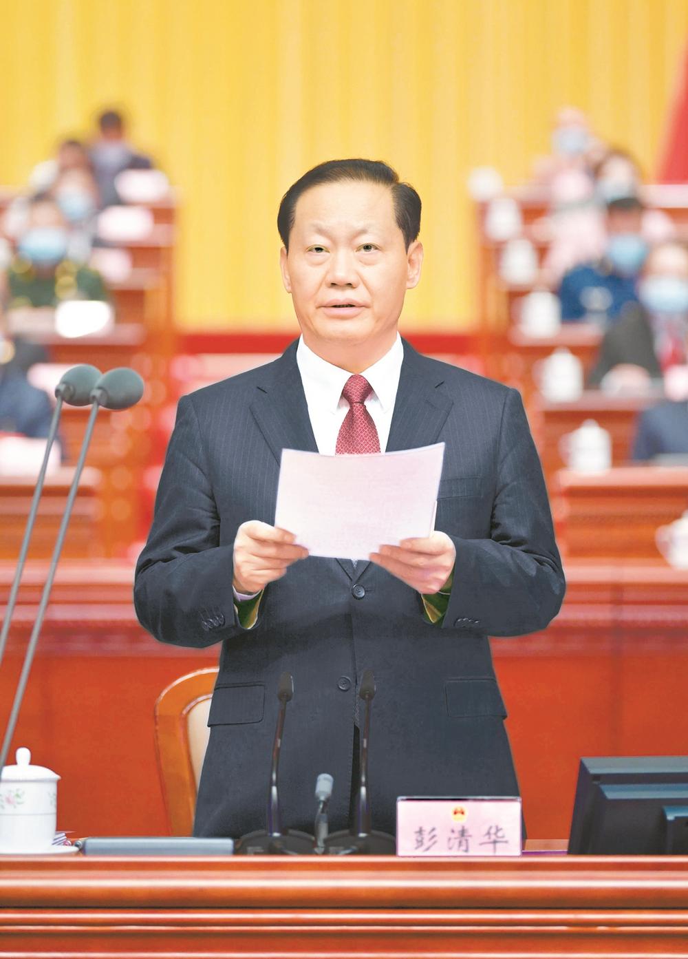 ཞིང་དཔོན་ཧོང་ཆང་གིས་ཞིང་ཆེན་མི་དམངས་སྲིད་གཞུང་གི་ཚབ་ཞུས་ནས་ལས་དོན་སྙན་སེང་གནང་བ་རེད། ཞིང་ཆེན་སྲིད་གྲོས་ཀྱི་ཀྲུའུ་ཞི་ཁོ་ཙུན་ཕིང་དང་ཞིང་ཆེན་སྲིད་གྲོས་ཏང་ཙུའུ་ཧྲུའུ་ཅི་ཐེན་ཞང་ལི་སོགས་ཚོགས་ཆེན་ལ་ཞུགས་པར་མ་ཟད།ཀྲུའུ་ཞི་སྡིངས་ཆ་རུ་བཞུགས་ཡོད།