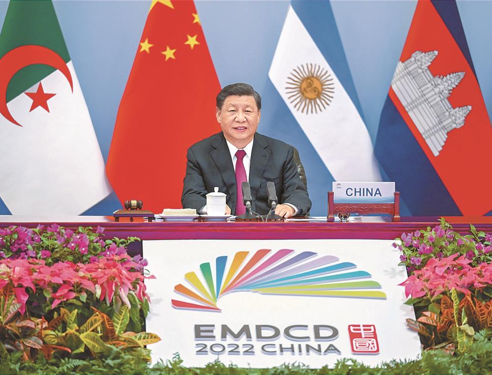 གསར་དར་ཁྲོམ་རའི་རྒྱལ་ཁབ་དང་འཕེལ་རྒྱས་འགྲོ་བཞིན་པའི་རྒྱལ་ཁབ་ཀྱི་དཔལ་འབྱོར་གྱིས་གོ་ལ་ཧྲིལ་པོའི་མངའ་ཁོངས་ཕྱེད་ཙམ་བཟུང་བ་དང་ཚན་རྩལ་དང་། སློབ་གསོ། སྤྱི་ཚོགས། རིག་གནས་སོགས་ཁྱབ་ཁོངས་སུའང་འཕེལ་རྒྱས་མྱུར་པོ་བྱུང་ཡོད། མིག་སྔར་ཏོག་གསར་གློ་ཚད་རིམས་ནད་ལས་གོ་ལ་ཧྲིལ་པོའི་ལོ་མང་འཕེལ་རྒྱས་ཀྱི་གྲུབ་འབྲས་ཉམས་རྒུད་ཤུགས་ཆེན་ཕྱིན་པ་དང་། མཉམ་འབྲེལ་རྒྱལ་ཚོགས་ཀྱི་2030ལོའི་བར་རྒྱུན་མཐུད་ཆོག་པའི་འཕེལ་རྒྱས་ཀྱི་གྲོས་རིམ་དོན་འཁྱོལ་བྱེད་པའི་འཕེལ་རིམ་ལ་འགོག་རྐྱེན་བཟོས་པ། ལྷོ་བྱང་གི་ཧེ་བག་མུ་མཐུད་ཆེ་རུ་ཕྱིན་པ། འབྲུ་རིགས་དང་ནུས་རྒྱུའི་བདེ་འཇགས་ལ་ཉམས་ཉེན་ཐོན་ཡོད། དེ་དང་དུས་མཚུངས་སུ་རྒྱལ་ཁབ་ཁག་གི་མི་དམངས་ཀྱིས་ཞི་བདེ་དོན་གཉེར་དང་། འཕེལ་རྒྱས་བརྩོན་ལེན། མཉམ་ལས་ལ་སྐུལ་གཏོང་བཅས་བྱེད་པའི་འདུན་པ་སྔར་བས་ཆེ་རུ་སོང་བ་དང་། གསར་དར་ཁྲོམ་རའི་རྒྱལ་ཁབ་དང་འཕེལ་རྒྱས་འགྲོ་བཞིན་པའི་རྒྱལ་ཁབ་ཀྱི་མཐུན་སྒྲིལ་རང་འཕེལ་གྱི་འདུན་པ་སྔར་བས་བརྟན་དུ་སོང་བ། རེས་སྐོར་གསར་པའི་ཚན་རྩལ་གསར་བརྗེ་དང་ཐོན་ལས་འཕོ་འགྱུར་ལས་རྒྱལ་ཁབ་ཁག་ལ་དེ་བས་ཡངས་པའི་གོ་སྐབས་བསྐྲུན་ཡོད།