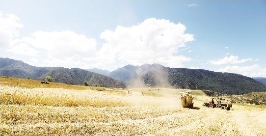 ཉེ་ཆར། དཔལ་ཡུལ་རྫོང་གིས་གནམ་གཤིས་ཡག་པོའི་གོ་སྐབས་དམ་འཛིན་བྱས་ཏེ་ཕྱོགས་ཅིག་ནས་ནད་ཡམས་འགོག་ཟོན་བྱེད་པ་དང་། ཕྱོགས་གཅིག་ནས་སྟོན་ཐོག་བསྡུ་བའི་ཐོན་སྐྱེད་ལས་དོན་དམ་དུ་འཛིན་ཞིང་། སྟོན་བསྡུའི་ཐོན་སྐྱེད་མཛུབ་ཁྲིད་འགག་སྒོ་དང་། སྤུས་ཚད་ཀྱི་འགག་སྒོ། འགོག་ཟོན་གྱི་འགག་སྒོ་བཅས་ནན་པོ་བསྲུངས་ཏེ། སྟོན་བསྡུ་དང་འགོག་ཟོན་ཕྱོགས་གཉིས་ཆ་དམ་དུ་བཟུང་ནས་འཐུས་ཤོར་མི་ཡོང་བ་བྱས་པ་རེད། དུས་མཉམ་དུ་ཞིང་ལས་ལག་རྩལ་མི་སྣ་སྒྲིག་འཛུགས་བྱས་ནས་ཞིང་ནང་དུ་མི་དང་འཕྲུལ་འཁོར་མཉམ་འབྲེལ་བྱེད་པའི་ཐབས་སྤྱད་དེ་ཞིང་དུད་ལ་སྟོན་བསྡུའི་བཀོད་སྒྲིག་ལུགས་མཐུན་བྱ་རྒྱུ་མཛུབ་ཁྲིད་བྱས་ཏེ། སྟོན་ཐོག་འབྲུ་རྡོག་གཅིག་ཀྱང་མ་ལུས་པ་འབྲུ་མཛོད་ནང་དུ་བསྡུ་ཐུབ་པ་འགན་ལེན་བྱས་པ་རེད།།