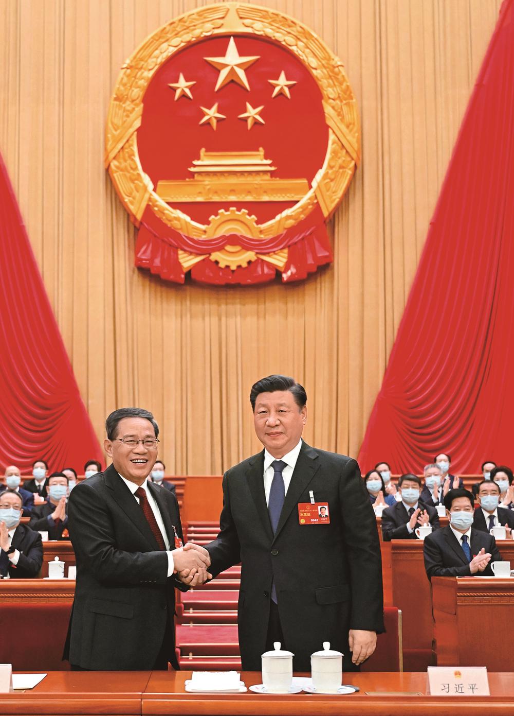 སྤྱི་ཟླ3པའི་ཚེས11ཉིན་གྱི་སྔ་དྲོར། རྒྱལ་ཡོངས་མི་དམངས་འཐུས་ཚོགས་སྐབས་བཅུ་བཞི་པའི་ཚོགས་འདུ་ཐེངས་དང་པོས་པེ་ཅིང་མི་དམངས་ཚོགས་ཁང་ཆེན་མོར་ཚང་འཛོམས་གྲོས་ཚོགས་ཐེངས་བཞི་པ་འཚོགས་ཤིང་། རྒྱལ་ཁབ་ཀྱི་ཀྲུའུ་ཞི་ཞི་ཅིན་ཕིང་གིས་མིང་འདོན་གནང་བ་གཞིར་བཟུང་། འདེམས་ཤོག་འཕངས་ནས་བརྡས་ཐག་བཅད་པ་བརྒྱུད། ལི་ཆང་ཀྲུང་ཧྭ་མི་དམངས་སྤྱི་མཐུན་རྒྱལ་ཁབ་རྒྱལ་སྲིད་སྤྱི་ཁྱབ་ཁང་གི་ཙུང་ལིར་གཏན་འཁེལ་བྱས་པ་རེད། འདི་ནི་ཞི་ཅིན་ཕིང་གིས་ལི་ཆང་ལ་ཕྱག་གཏོང་གནང་བཞིན་པའི་ཚུལ།