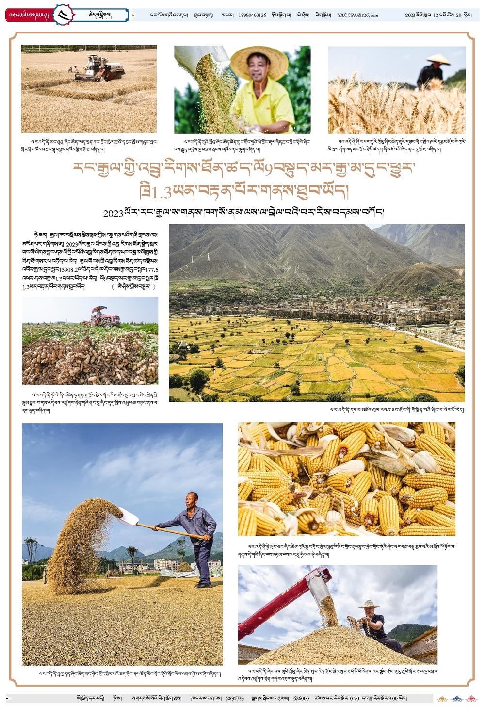 རང་རྒྱལ་གྱི་འབྲུ་རིགས་ཐོན་ཚད་ལོ9བསྟུད་མར་རྒྱ་མ་དུང་ཕྱུར་ ཁྲི1.3ཡན་བརྟན་པོར་གནས་ཐུབ་ཡོད།