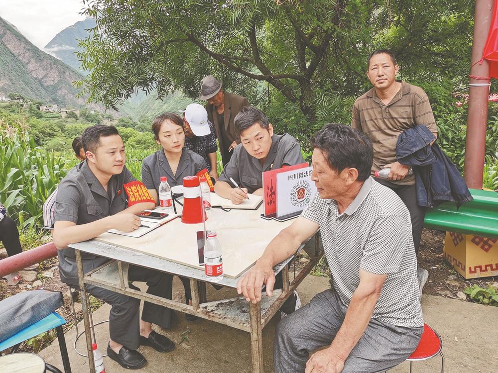 སྤྱི་ཟླ6པའི་ཚེས16ཉིན།རོང་བྲག་རྫོང་དུ་རི་ཉིལ་ནས་འདམ་རྡོའི་ཆུ་རུད་ཀྱི་གནོད་སྐྱོན་བྱུང་རྗེས། རྫོང་དེའི་ཁྲིམས་ཁང་གིས་གནོད་སེལ་ལས་དོན་ཚོགས་ཆུང་མངགས་གཏོང་བྱས་ནས་གཅིག་བསྡུས་བཀོད་སྒྲིག་བྱ་ཡུལ་གྱི་མི་སེར་ལ་གླ་ཆ་མེད་པ་དང་། ལག་ཁྱེར་བོར་བརླག་བྱུང་བ། འགན་བཅོལ་དང་འབྲེལ་བ་ཡོད་པ་སོགས་ཀྱི་བཅའ་ཁྲིམས་གནད་དོན་ཐད་རྒྱུས་ལོན་བྱས་ཡོད། དེ་ཡང་ཁྲིམས་ཁང་དང་གྱོད་དོན་ཐོ་འགོད་ཁྲིམས་རའི་ཉེན་རྟོག་ལས་བྱེད་པས་སྒོ་ལུང་གྲོང་རྡལ་སྐར་ལྔའི་གྲོང་སྡེར་བསྐྱོད་དེ་བཅའ་ཁྲིམས་གྲོས་འདྲི་དང་དམངས་བདེའི་གྱོད་དོན་ཐོ་འགོད་ཀྱི་ཁྲིམས་སྐྱོང་སྒྲོག་འགྲེལ་བྱས་ཏེ་བཅའ་ཁྲིམས་ཞབས་ཞུ་མི་སེར་གྱི་སྒོ་འགྲམ་དུ་སྤེལ་བ་རེད།