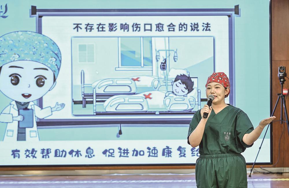 སྦྲིད་སྨན་ཚན་ཁག་ནས་ཡོང་བའི་སྨན་ཞབས་པས་གཞས་མ་གཏམ་འཁྲབ་སྟོན་བྱེད་བཞིན་པ།