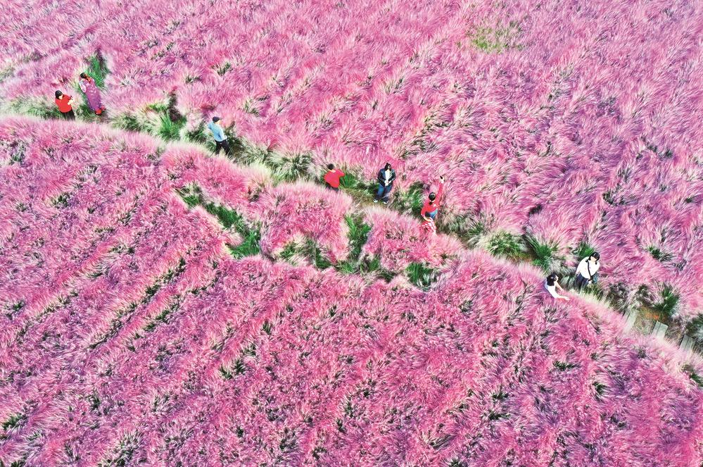 ཡུལ་སྐོར་བས་ཧའེ་ནན་ཞིང་ཆེན་ཆུང་ཧའེ་གྲོང་ཁྱེར་པོ་ཨའོ་མཚོ་འགྲམ་དུ་ལྟ་སྐོར་བྱེད་བཞིན་པ།