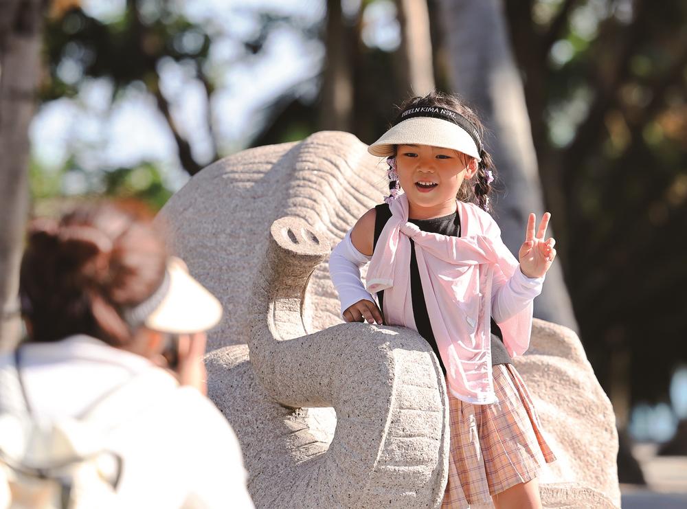 ཁྱིམ་བདག་གིས་ཕྲུ་གུ་ཁྲིད་ནས་ཧའེ་ནན་སན་ཡ་ནན་ཧྲན་རིག་གནས་ཡུལ་སྐོར་ཁུལ་དུ་ལྟ་སྐོར་བྱེད་བཞིན་པ།