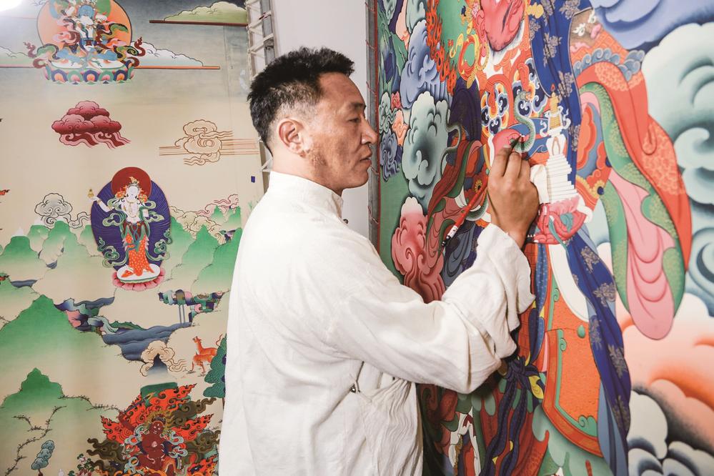 སྤྱི་ལོ2015ལོའི་ཟླ་བ3པར་ཁོས་ཞལ་འདེགས་ཕུལ་བའི་ཐང་གའི་བརྩམས་ཆོས《གེ་སར་རྒྱལ་པོ》དེ་ཀོང་ཞི་ཀྲོང་རིགས་རང་སྐྱོང་ལྗོངས་ཀྱི་དངོས་མང་བཤམས་སྟོན་ཁང་དུ་ཉར་ཚགས་བྱས། སྤྱི་ལོ2019ལོའི་ཟླ་བ3པར་སི་ཁྲོན་ཞིང་ཆེན་གྱི“གསེར་གྱི་དོམ་ཁྲ་བྱ་དགའ”སྐབས་དང་པོ་ཁྲོད་སྔོན་ཐོན་མི་སྒེར་གྱི་གཟེངས་བསྟོད་ཐོབ། དེ་ལོའི་ཟླ་བ10པར་དཀར་མཛེས་ཁུལ་གྱི་གངས་ལྗོངས་ཁམས་ཀྱི་རིག་གནས་བརྒྱུད་འཛིན་ཕོ་ཉ་ཞེས་པའི་མཚན་སྙན་ཐོབ། སྤྱི་ལོ2020ལོའི་ཟླ་བ5པར་དཀར་མཛེས་ཁུལ་གྱི་རིག་རྩལ་མཁས་ཅན་གྱི་མཚན་སྙན་ཐོབ། ཁོས་འཛུགས་གཉེར་བྱས་པའི་ཐང་གའི་སྒྱུ་རྩལ་གླིང་ལ2021ལོའི་ཟླ་བ་དང་པོར་སི་ཁྲོན་ཞིང་ཆེན་གྱི་ཞིང་ཆེན་རིམ་པའི་གཟུགས་མེད་རིག་གནས་ཤུལ་བཞག་དབུལ་སྐྱོར་ལས་ཞུགས་བཟོ་ལས་ཁང་ཞེས་པའི་མཚན་སྙན་ཐོབ།