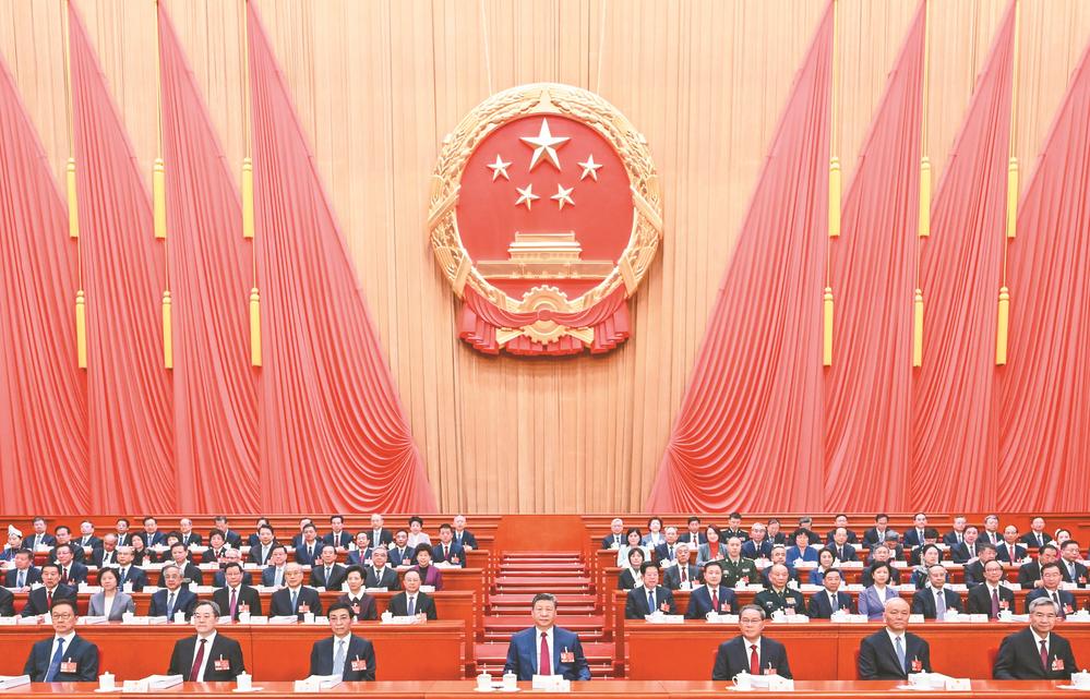 སྤྱི་ཟླ3པའི་ཚེས5ཉིན་གྱི་སྔ་དྲོར། སྐབས་བཅུ་བཞི་པའི་རྒྱལ་ཡོངས་མི་དམངས་འཐུས་མི་ཚོགས་ཆེན་གྱི་གྲོས་ཚོགས་ཐེངས་བཞི་པ་པེ་ཅིང་མི་དམངས་ཚོགས་ཁང་ཆེན་མོར་འཚོག་འགོ་བརྩམས་པ་རེད། རྒྱལ་ཡོངས་མི་དམངས་འཐུས་ཚོགས་ཀྱི་འཐུས་མི་ཚོས་མི་དམངས་ཀྱི་མངགས་བཅོལ་ཟབ་མོ་ཕྲག་ཏུ་ཁུར་ནས་ཚོགས་ཆེན་ལ་ཞུགས་ཏེ། རྩ་ཁྲིམས་དང་བཅའ་ཁྲིམས་ཀྱིས་སྤྲད་པའི་འགན་འཁྲི་བླ་ན་མེད་པ་བསྒྲུབས་ཡོད།